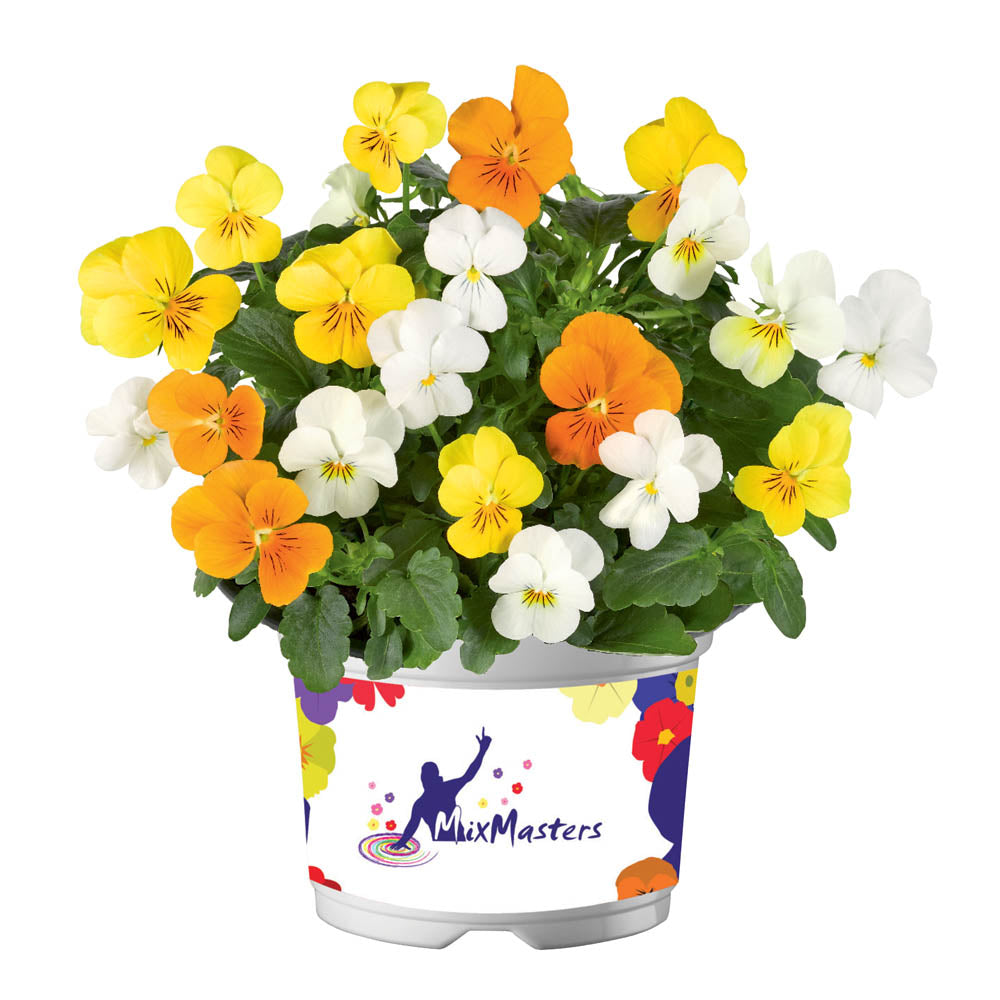 This eye-catching Viola ‘Amsterdam’ mix offers a vibrant colour solution for your garden, pots, or balcony boxes. It is free-flowering and uniform, producing blooms consistently throughout the season. This mix features bright white, orange, and yellow petals, creating a carefully balanced, cheerful splash of colour.